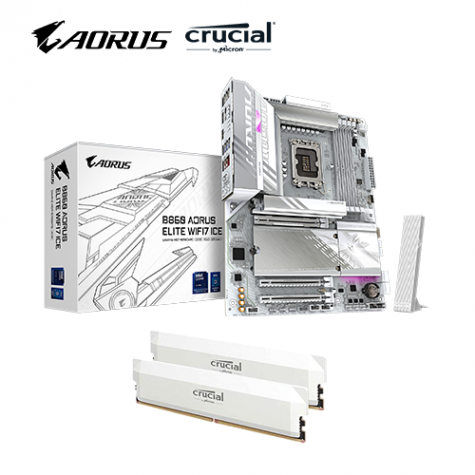 【CPU限量送!】技嘉 B860 AORUS ELITE WIFI7 ICE+美光 Crucial PRO DDR5-6000 32G(16G*2)(白散熱片)