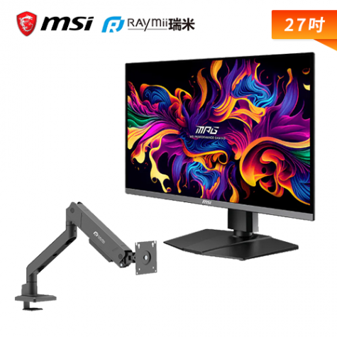 【螢幕支架組】【27型】MSI MPG 271QRX QD-OLED 電競螢幕 (DP/HDMI/Type-C(90w)/QD-OLED/2K/0.03ms/360Hz/Adaptive Sync/HDR BLACK 400/可升降/可旋轉/無喇叭/三年保固)+ANDY系列 Raymii 瑞米 LS-126-M1 氣壓式高承重螢幕支架