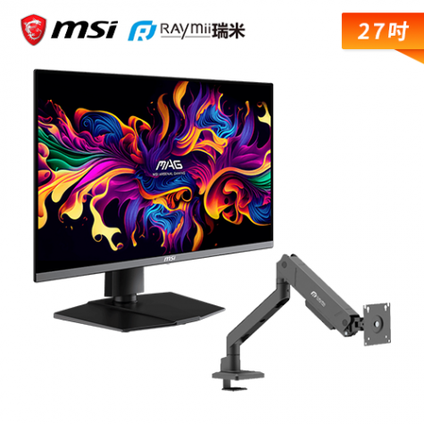 【螢幕支架組】【27型】MSI MAG 272UP QD-OLED X24 電競螢幕 (DP/HDMI/Type-C/QD-OLED/4K/0.03ms/240Hz/Adaptive-Sync/HDR BLACK 400/KVM/可升降/可旋轉/無喇叭/三年保固)+ANDY系列 Raymii 瑞米 LS-126-M1 氣壓式高承重螢幕支架
