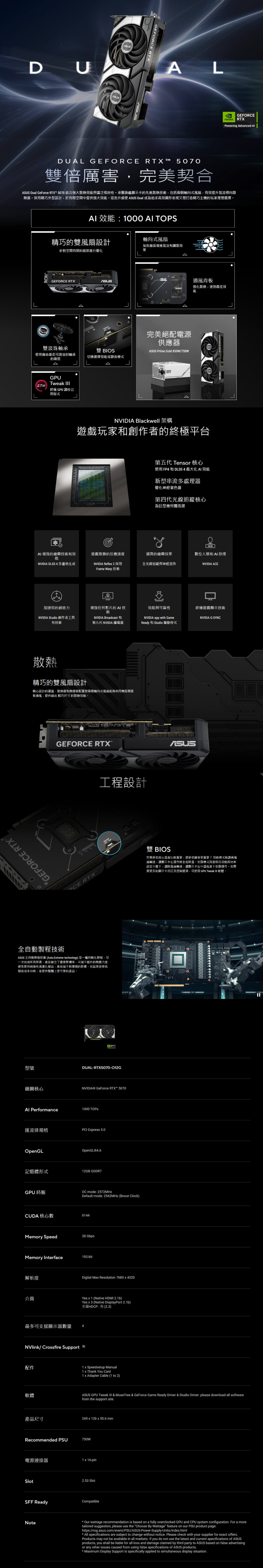 【抗漲促銷】華碩 DUAL-RTX5070-O12G+MONTECH Century II 850W+威剛 ADATA XPG S70 BLADE 1TB