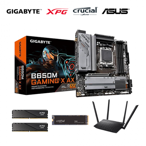【重磅價】技嘉 B650M GAMING X AX+威剛 XPG LANCER BLADE DDR5-6000 32G(16G*2) (矮版散熱片)-黑(CL30)+美光 Crucial T500 1TB+ASUS RT-AC1200 V2 雙頻無線分享