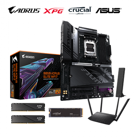 【重磅價】技嘉 B850 AORUS ELITE WIFI7+威剛 XPG LANCER BLADE DDR5-6000 32G(16G*2) (矮版散熱片)-黑(CL30)+美光 Crucial T500 1TB+ASUS RT-AC1200 V2 雙頻無線分享