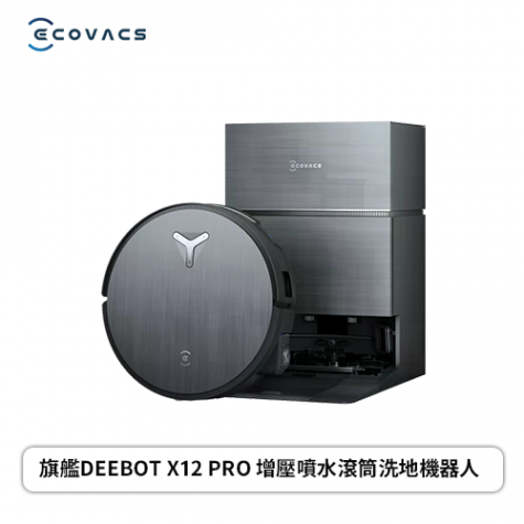 【ECOVACS科沃斯】旗艦DEEBOT X12 PRO 噴溶增壓滾筒洗地機器人(高壓噴射清潔液水/氮化鎵超充))