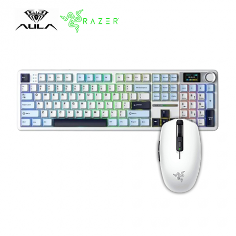 狼蛛 AULA F108pro (淺藍+白+黑紫 ) + 雷蛇 Orochi V2 八岐大蛇靈刃V2(白)