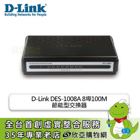 D-Link DES-1008A 8埠100M非網管節能型交換器/桌上型乙太網路交換器/3年保固