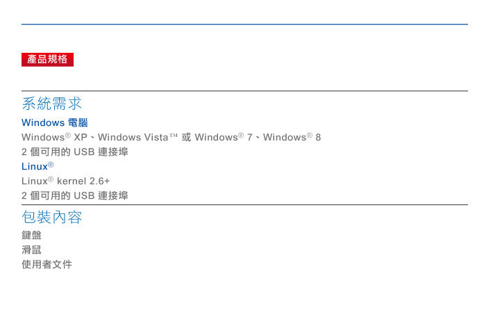 線長-鍵盤 : 150 cm 線長-滑鼠 : 170 cm