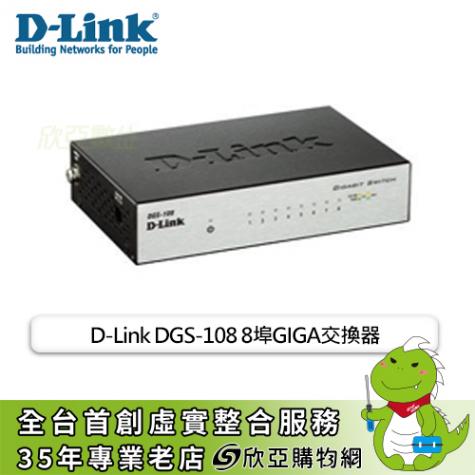 D-Link DGS-108 8埠GIGA非網管節能型網路交換器/桌上型超高速乙太網路交換器/金屬殼散熱/3年保固